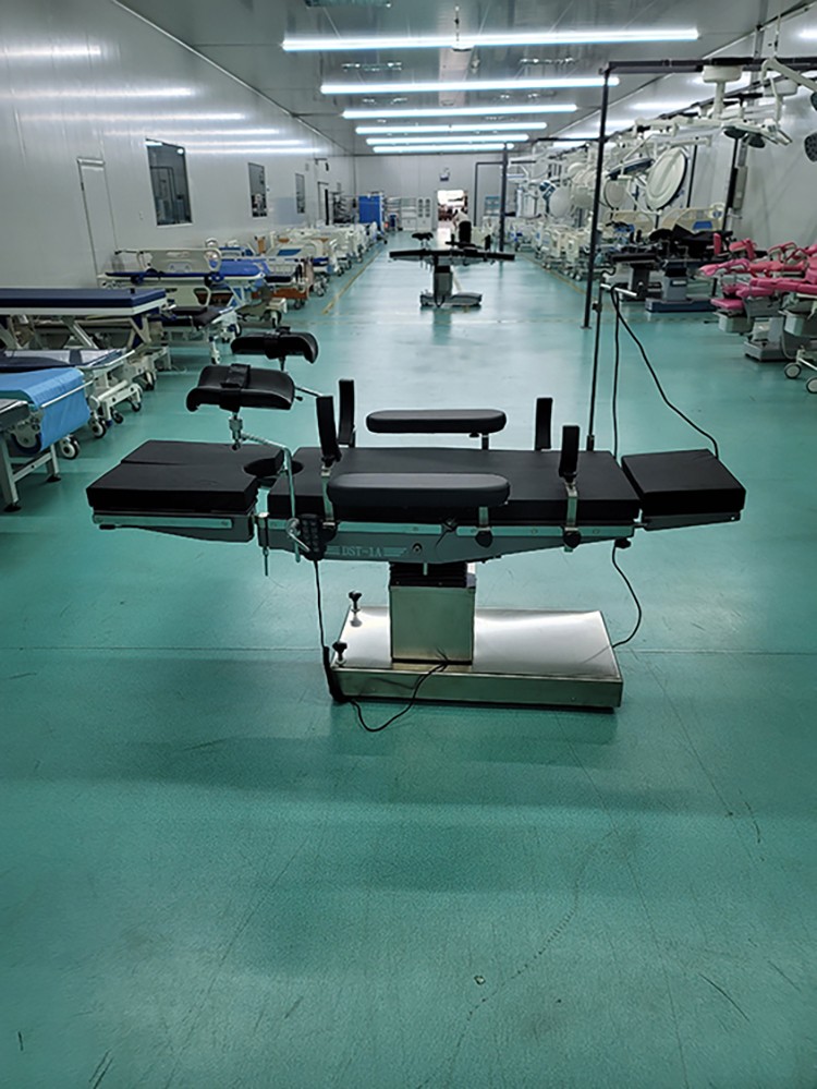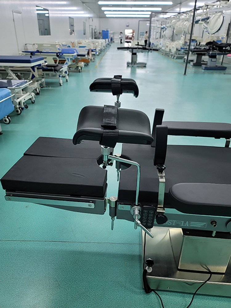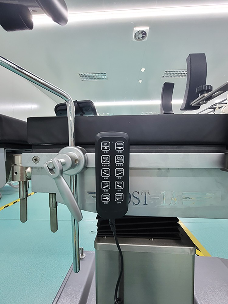 手持操縱器采用24V直流電壓,操作簡(jiǎn)單、安全可靠;臺(tái)面升降、前后傾、左右傾、平移等主要體位調(diào)整均由按健操作、電動(dòng)推桿傳動(dòng)實(shí)現(xiàn)。起背用氣缸驅(qū)動(dòng)鎖定。
